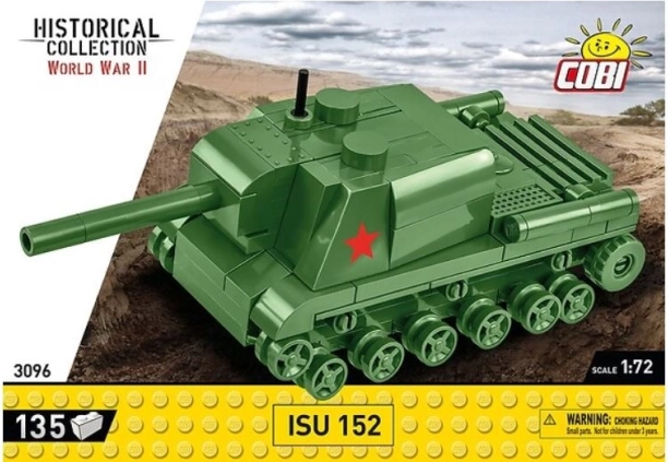 ISU‑152, težka sovjetska samohodna havbica iz obdobja druge svetovne vojne, je slovela po učinkovitosti proti oklepnim ciljem in utrdbam zahvaljujoč mogočnemu topu kalibra 152 mm ter podvozju tanka IS. Ta mini replika COBI v merilu 1:72 zvesto posreduje značaj ikoničnega stroja v kompaktni velikosti, idealni za pisalno mizo ali polico.