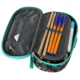 Elastični nosilci na notranjem preklopu držijo pisala pregledno in na dosegu. Nič se ne razsipa, vse ima svoje mesto.
