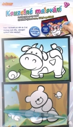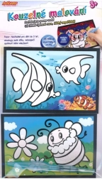 Čarobno barvanje z vodo zabava tudi najmlajše ustvarjalce. Potrebujete le vodo in zahvaljujoč posebni beli plasti na slikah, ki ob navlažitvi izgine, lahko ustvarjate čarobne barvite podobe. Ko se slika posuši, se znova prekrije z belo barvo, kar omogoča ponovno barvanje vedno znova.