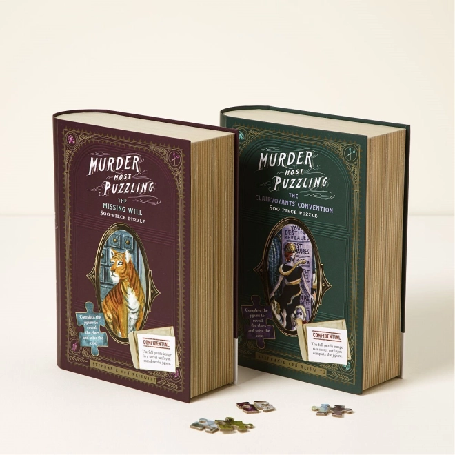 Elegantna embalaža sestavljanke v obliki knjige in njene žive barve s skritimi detajli bodo navdušile tudi zahtevne ljubitelje detektivk.