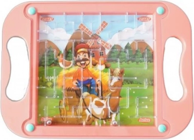 Ta model je opremljen z barvito ilustracijo kmeta in konja na rožnatem ozadju. Pomaga razvijati fino motoriko.