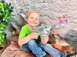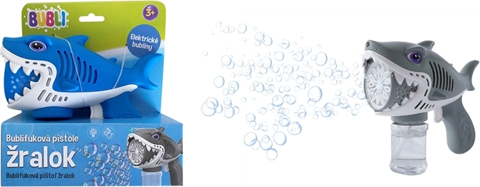 Otroci obožujejo mehurčke in s pištolo za milne mehurčke v obliki morskega psa bodo uživali ure zabave. Deluje na principu pritiska sprožilca, ki aktivira mehanizem pihanja zraka skozi milno tekočino. Ob pritisku sprožilca se neprekinjeno sproščajo velike količine mehurčkov, kar otroci obožujejo.