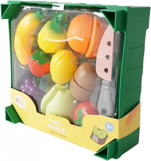 Navdušite svoje otroke z igranjem s tem Plejo kompletom sadja. Vsak kos sadja je opremljen z ježkom, kar omogoča enostavno rezanje s priloženim plastičnim nožem. Zabojček, ki se lahko zloži, zagotavlja preprosto pospravljanje in kreativno razporeditev. Komplet vsebuje skupno 19 kosov, kar ponuja veliko možnosti za domišljijsko igro.