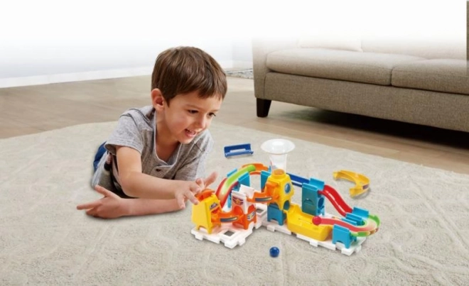 Marble run Začetni set Blisk je idealna izbira za vsakega malega graditelja. Ta igrača omogoča ustvarjanje edinstvenih in zabavnih postavitev, ki vašim otrokom pomagajo razvijati ustvarjalne in konstruktorske sposobnosti. Z jasno obarvanimi navodili stezo zlahka sestavite, z možnostjo povezovanja z drugimi seti pa lahko svoje igralno polje nenehno širite.