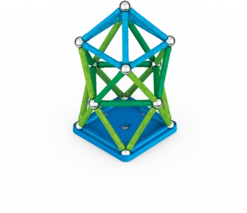 Komplet ponuja magnetne paličice in kroglice, ki zagotavljajo trpežnost in stabilnost vsake konstrukcije. Vsebuje dva posebna kvadratna in dva petkotna podstavka.