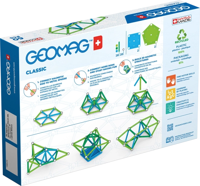 Doživite revolucijo v igri s kockami s kompletom Geomag Classic Recycled, ki prinaša nove možnosti ustvarjalnega gradjenja. Ta set vsebuje magnetne paličice in kroglice, ki omogočajo enostavno povezovanje in stabilne konstrukcije.