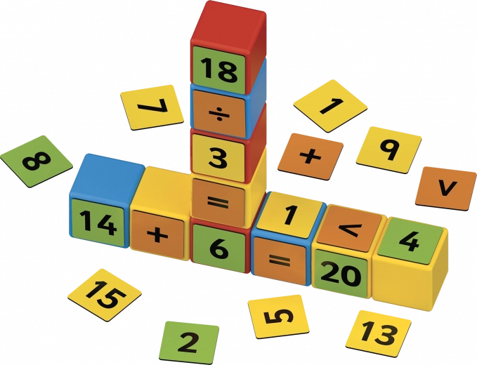 Set je izdelan iz 100 % reciklirane plastike in je zasnovan za varno igro otrok od 3 let dalje. Barvno kodiranje številk in operacij pomaga k hitrejšemu razumevanju osnov matematike, medtem ko komplet brez sponk deluje kot polnovreden magnetni set. Razvija logično mišljenje, reševanje problemov in koordinacijo oko–roka.