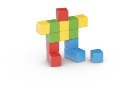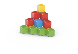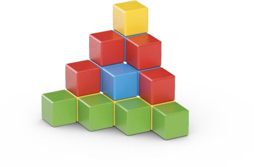 Iz 16 kock lahko sestavite preproste figurice, živalice in fantastične oblike. Igra naravno razvija domišljijo in logično razmišljanje.