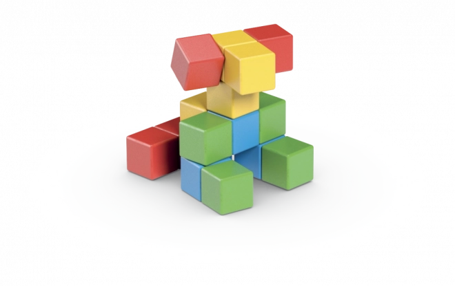 Vsaka kocka se privlači na vseh šestih straneh, zato otroci zlahka ustvarjajo čvrste modele tudi v prostoru brez zahtevnega uravnavanja.