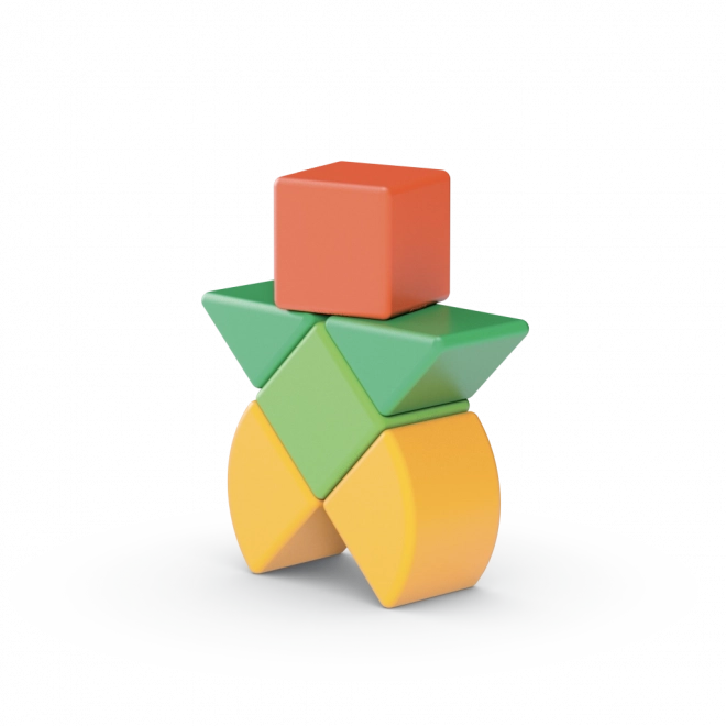 Kombinacija kock in drugih oblik razvija kreativnost, fino motoriko in logično mišljenje že od najzgodnejšega obdobja.