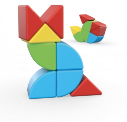 Magnetna sestavljanka vsebuje 16 polkock in 8 izsekov v štirih barvah. Kombinirajte jih z drugimi oblikami iz serije Magicube. Primerno od 1. leta.