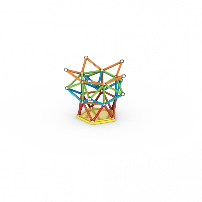 142 kosov, vključno z magnetnimi palčkami, jeklenimi kroglicami in podstavki, vam omogoča ustvarjanje mostov, stolpov in kompleksnih 3D oblik ter razvija domišljijo z vsakim dotikom.
