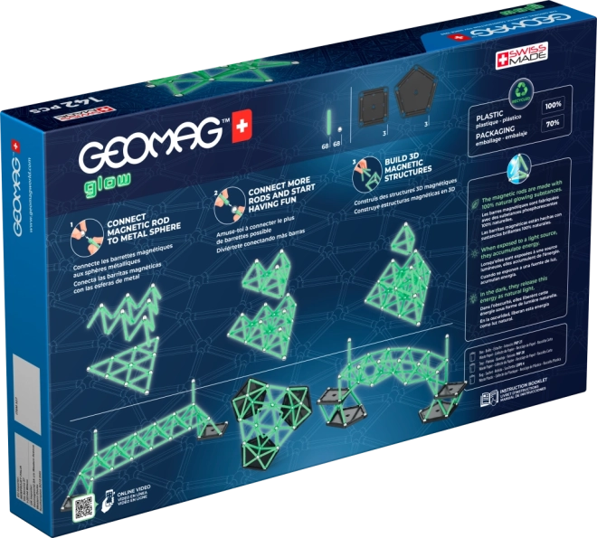 Odkrijte ustvarjalni svet magnetnih konstrukcij s kompletom Geomag Glow, ki sveti v temi in spodbuja domišljijo otrok in odraslih. S kombinacijo svetlečih palčk in jeklenih kroglic lahko ustvarite preproste in kompleksne 2D in 3D modele, ki so stabilni zahvaljujoč trdnim podstavkom.