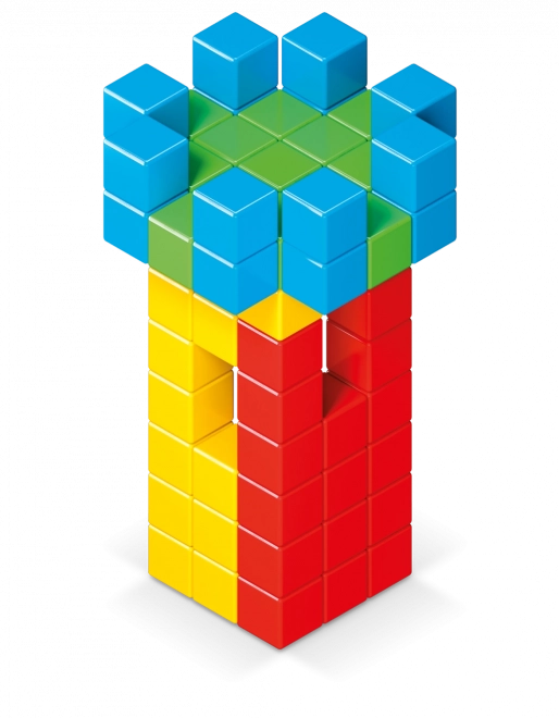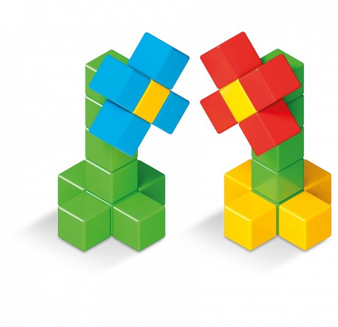 Edinstvena zasnova Magicube omogoča spajanje kock iz vseh smeri, zato so konstrukcije stabilne, domišljija pa ne pozna meja. Odlično za prve gradnje in tudi zahtevnejše modele.