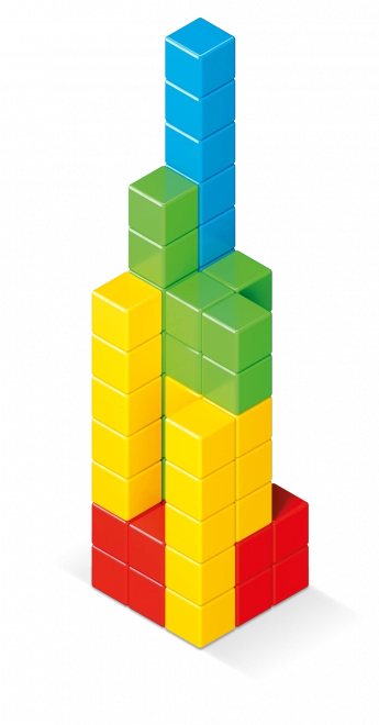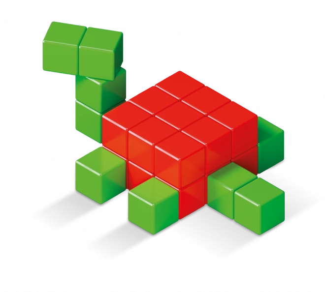Otroci zlahka ustvarjajo like, živali in prevozna sredstva. Barvite kocke spodbujajo domišljijo in razvoj fine motorike.