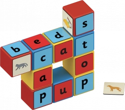 45 dvostranskih sponk s črkami in ilustracijami podpira prepoznavanje črk, sestavljanje prvih besed in razvoj besedišča.