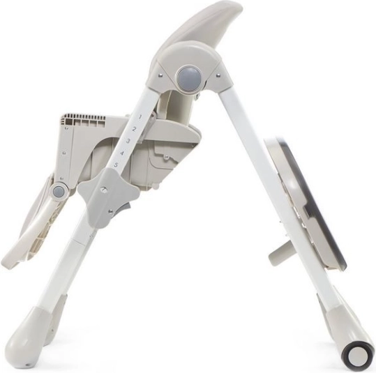 YUMMY se v nekaj sekundah zloži skoraj povsem na ravno. Pladenj lahko pritrdite na zadnje noge stolčka, zato v zloženem stanju res zavzame zelo malo prostora. Zahvaljujoč gumiranim kolescem in ročaju na naslonjalu ga lahko tudi preprosto premikate.
