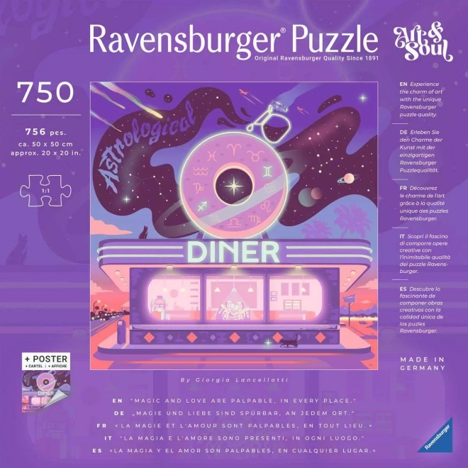 Potopite se v svet ilustracij in sestavite svoje lastno umetniško delo. Kvadratne sestavljanke Ravensburger Art & Soul: Astrologijska jedilnica prinašajo dovršen motiv, kakovosten tisk in natančne izreze, zaradi katerih se kosi gladko prilegajo. Idealno za trenutke sprostitve ali kot dizajnerska dekoracija po sestavljanju.