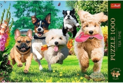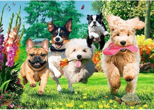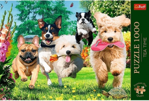 Odkrijte čudovito izdelano sestavljanko iz kolekcije Tea Time, ki vas popelje v svet barv, čustev in vesele energije. Živahen motiv s psi v razcvetenem vrtu izstopa po podrobni ilustraciji in bogatih barvah, zaradi katerih je sestavljanje pravi užitek. Končana sestavljanka velikosti približno 68,3 × 48 cm je odlična tudi za uokvirjanje.