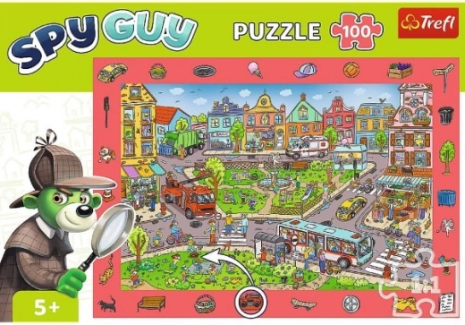 Odkrijte mestne dogodivščine z opazovalnimi sestavljankami SPY GUY – Mesto s 100 koščki. Barvita ilustracija, polna podrobnosti in skritih elementov, uri pozornost, spomin in ustvarjalnost. Sestavite sliko in poiščite predmete z okvirja – zabava in trening zbranosti v enem.