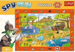 Odkrijte zabavo in treniranje ostrega očesa z opazovalnimi puzzli SPY GUY Safari s 24 koščki. Barvita ilustracija je polna podrobnosti in skritih elementov, ki jih otroci po sestavljanju iščejo s pomočjo namigov na robu. Odlična izbira za razvoj domišljije, spomina in opazovalnih spretnosti.