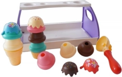 S tem zabavnim sladolednim kompletom si otroci zlahka ustvarijo svoj sladoledni bar. Servirni pladenj s stojalom drži kornetek lepo na mestu, z žlico pa je “ zajemanje ” sladoleda igrača. Idealno za igro vlog in razvijanje domišljije.