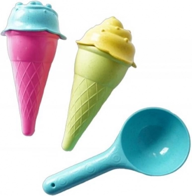 Spremenite peskovnik v sladoledarno! Ta ljubek komplet vsebuje kornet, kepico in servirno žlico, s katerimi otroci zlahka ustvarijo peščene kepice in cele “kupčke”. Preprosta uporaba spodbuja samostojnost in domišljijo pri igri.