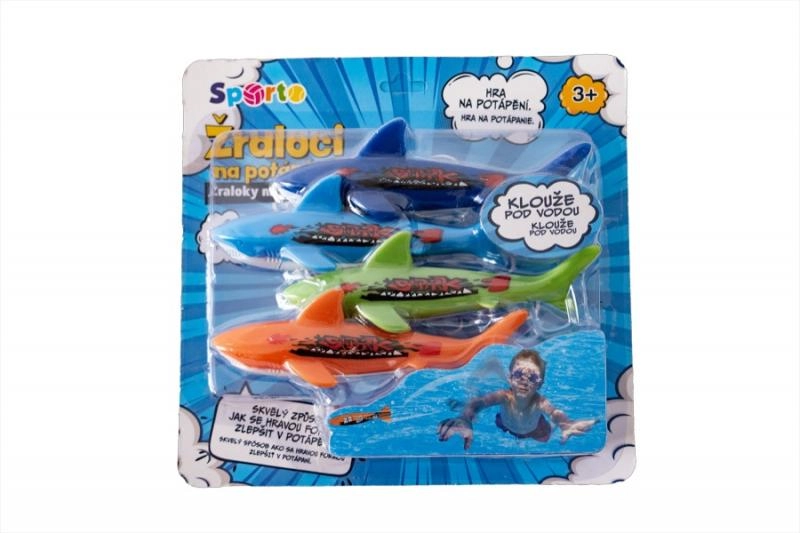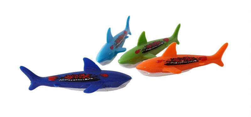 4 barviti morski psi, ki se po metanju v vodo potopijo, ti pa jih moraš uloviti.