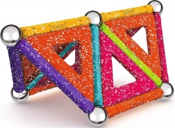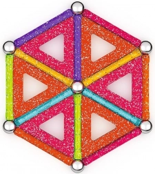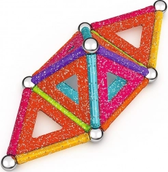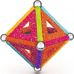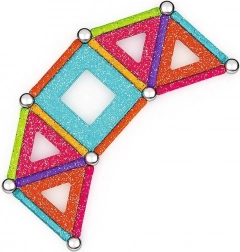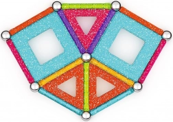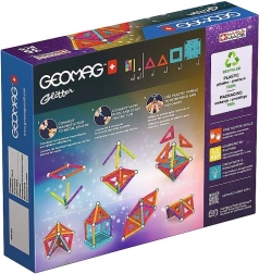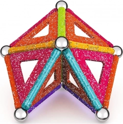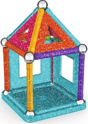 GEOMAG Glitter prinaša magijo magnetov v osupljivem bleščanju. Z barvitimi paličicami, jeklenimi kroglicami in paneli zlahka zgradite hišice, zvezde in izvirne geometrijske oblike. Vsi plastični deli (razen kroglic) imajo bleščečo obdelavo, ki vsaki zgradbi doda izjemen videz.