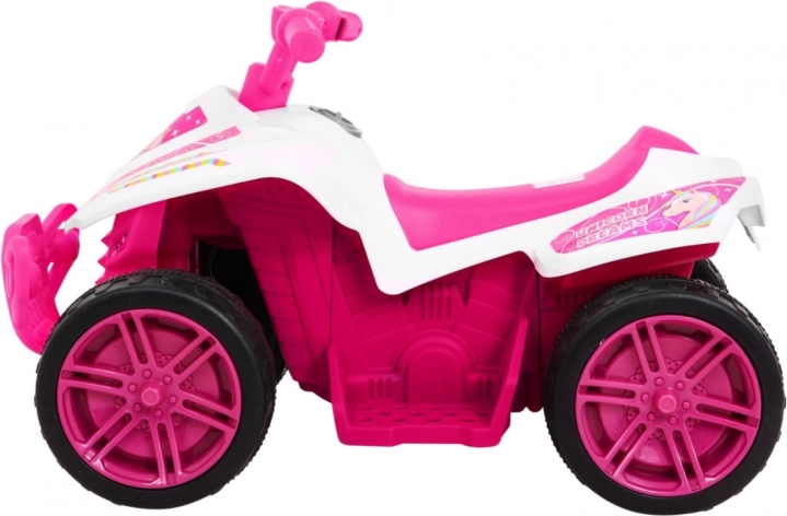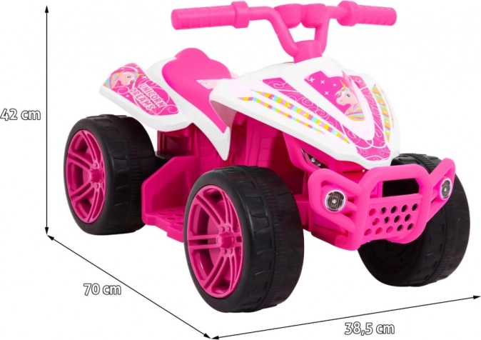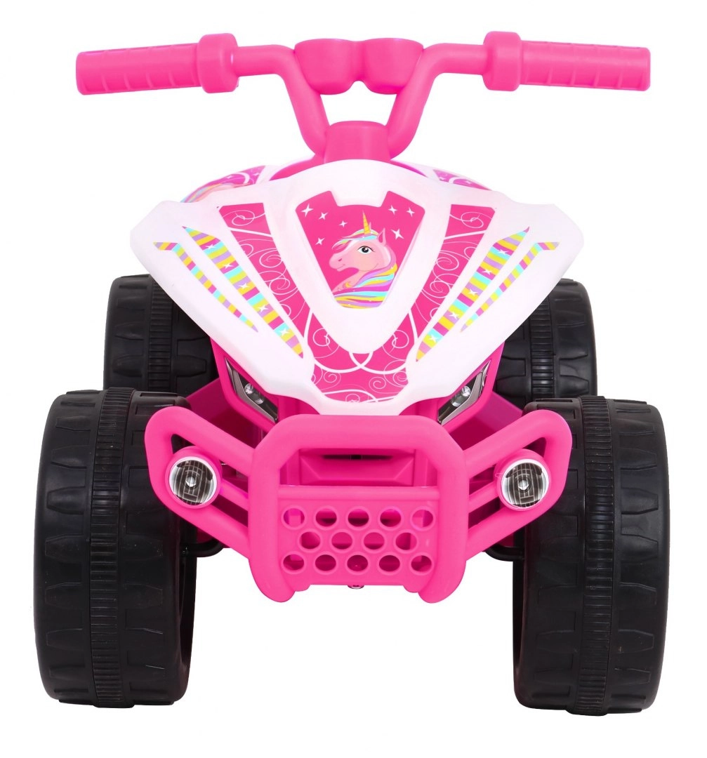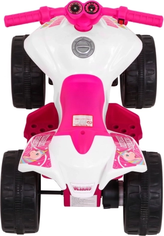 Zabaven otroški električni štirikolesni voz za najmlajše z motorjem 25 W in baterijo 6 V / 4,5 Ah. Stabilna konstrukcija, plastična kolesa za gladko vožnjo in kompaktne mere za varno upravljanje doma in na prostem. Idealno za razvoj motorike in samozavesti malih voznikov.