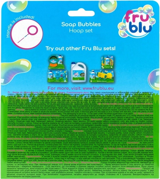 Odkrijte sezonsko novost – kompakten komplet FRU BLU z obročem in raztopino 0,4 l. Cenili boste preprosto sestavo in shranjevanje, zato je idealen za vrt, park in počitnice. Dovolj je, da raztopino nalijete v plitek krožnik, pomočite obroč in z enakomernim gibom ustvarjate ogromne, bleščeče mehurčke.