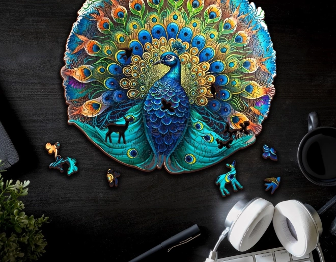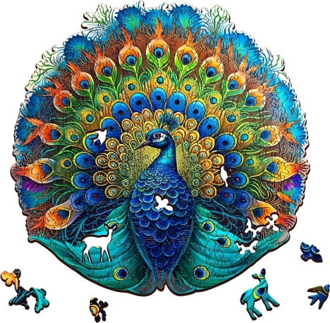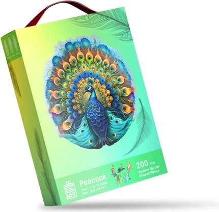 Uživajte v edinstveni izkušnji z leseno sestavljanko z motivom pava! Vsak izmed 200 kosov je natančno izrezan z laserjem, kar zagotavlja popolno natančnost in gladkost. Zahvaljujoč sodobni tehnologiji UV digitalnega tiska, sestavljanka prinaša realistične in živahne barve v vsak kos.