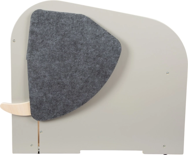 Škatla nudi velikodušen prostor za shranjevanje tudi večjih igrač, sprednje predalčke za knjige in pisalne potrebščine, med »kljami« pa skriva izvlečno palico za obešanje rola papirja za risanje. Kakovostna filcana ušesa zakrivajo skrite odprtine, vrtljiv »slonji rep« služi kot udoben ročaj za odpiranje in zapiranje ter lahko skrije drobnarije.