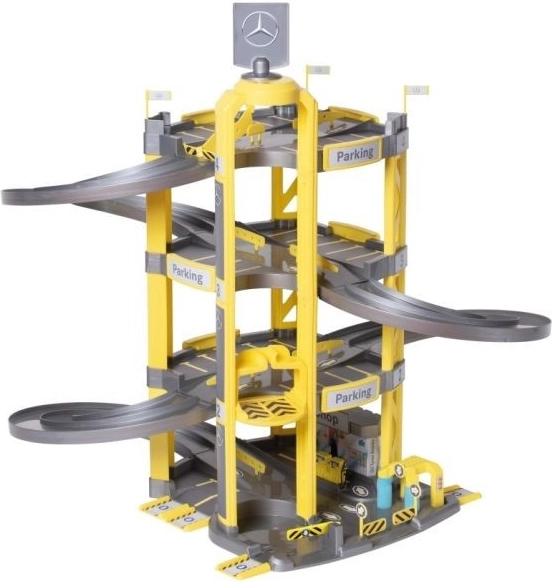 Licencirana parkirna garaža MERCEDES-BENZ prinaša otrokom veliko zabave na 4 nivojih. Ponuja dvojno dirkalno rampo, 2 stezi za dva majhna avtomobilčka ali 1 pas za večji avto, funkcionalno dvigalo, bencinsko črpalko, avtopralnico in 2 avtomobilčka v paketu.