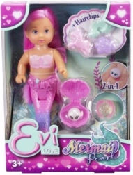 Punčka Evi kot biserna morska vila očara otroke s svojim vijoličnim ribjim repom in dolgimi rožnatimi lasmi, ki jih je mogoče urejati s priloženimi sponkami v obliki oblačka, mavrice in samoroga. Priložena je tudi čarobna bisera, ki jo je mogoče vstaviti v otroški prstan in jo spremeniti v čaroben kos nakita.