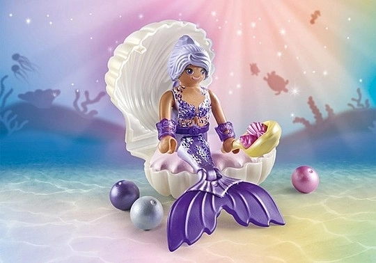 Potopite se v svet domišljije z igralnim setom Playmobil Princess Magic – morska vila z biserno školjko. Otroci lahko vili pomagajo iskati in zbirati bisere na morskem dnu s pomočjo posebnega prijemala, jih prenašati z mrežico in shranjevati v veliko školjko. Bogata oprema in podrobna izdelava figur ter dodatkov vabita k neskončnim zgodbam.