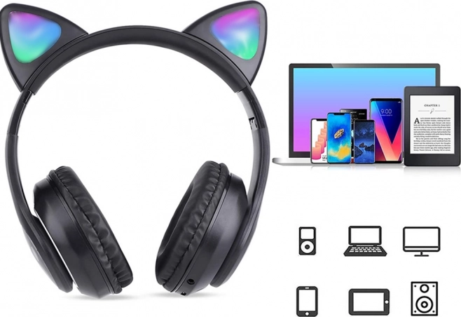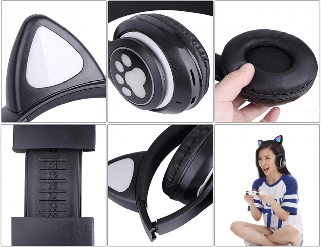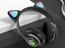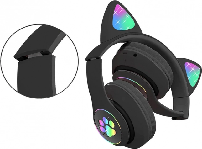 Stilske brezžične slušalke z mačjimi ušesi in RGB LED osvetlitvijo združujejo udobje, kakovosten zvok in večfunkcijsko opremo. Podpirajo Bluetooth 5.0, predvajanje z micro SD, imajo FM radio in vgrajen mikrofon za prostoročne klice. Mehke ušesne blazinice ter lahka, zložljiva zasnova zagotavljajo udobje tudi pri daljšem poslušanju.
