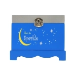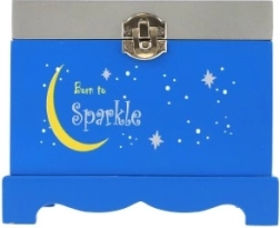 Dizajn z napisom »Born to Sparkle«, zvezdicami in lunico deluje igrivo in dekorativno. Zaradi kompaktnih mer se škatlica prilega na komodo ali polico in postane čudovita dekoracija otroške sobe.