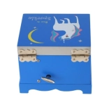 Ta lesena glasbena škatlica za nakit v očarljivi modri barvi je popoln prostor za shranjevanje drobnih zakladov, prstanov in zapestnic. Pokrov z ogledalom omogoča hitro preverjanje videza, po navijanju pa se v notranjosti zavrti samorog in zazveni nežna melodija.