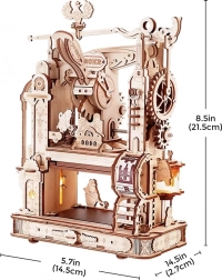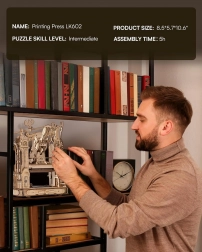 Vdihnite življenje klasičnemu tiskarskemu stroju v edinstvenem steampunk slogu. Po pritisku na ročico se zavrtijo zobniki, figuralni »tiskarski medvedi« poženejo stroj, po končanem opravilu pa se prižge luč. Stranska srednjeveška ura z astrolabom modelu daje čar in pristnost. Model je idealen kot kreativen DIY projekt, privlačna dekoracija in pametno izobraževalno orodje za razvoj tehničnega razmišljanja.