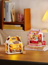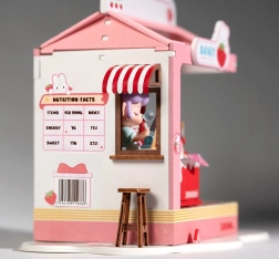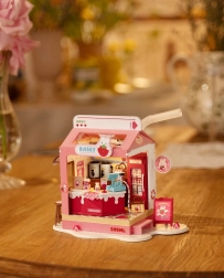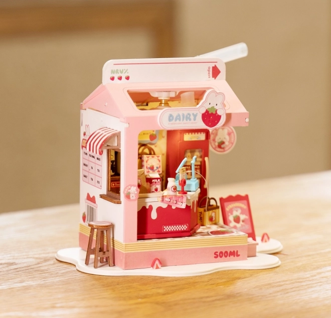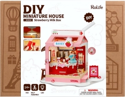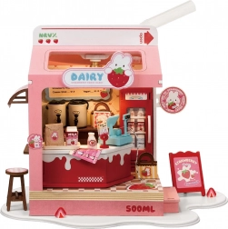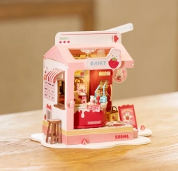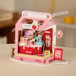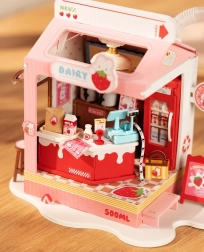 Odkrijte čar mini sveta z miniaturno hišico Mlečni bar Strawberry. Ta ustvarjalni komplet Robotime navduši z realističnimi podrobnostmi, igrivim dizajnom in prijetno LED osvetlitvijo. Sestavljanje vas zabava, rezultat pa je očarljiva dekoracija za polico ali pisalno mizo.