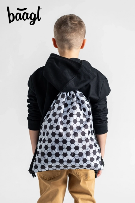 Lahka in trpežna športna vreča BAAGL Goal z motivom nogometnih šesterokotnikov je idealna za obutev, oblačila ali drobnarije za trening in prosti čas. Zahvaljujoč čvrstemu pralnemu materialu in zatezanju z vrvicami jo enostavno zaprete in udobno nosite na hrbtu.