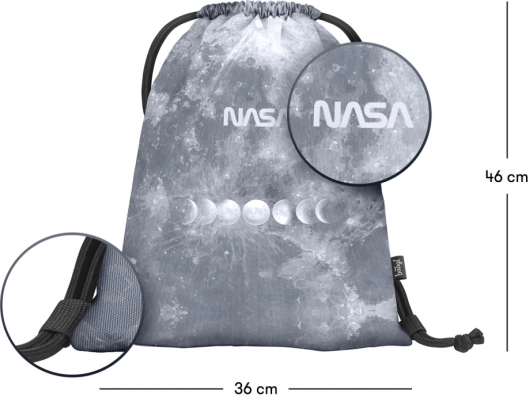 Sodoben športni nahrbtnik z motivom NASA v sivem lunarnem dizajnu je idealen za čevlje in malenkosti v prostem času. Izdelan je iz trpežnega in pralnega materiala, ima vzdržljive zatezne vrvice za zapiranje in hkrati udobno nošenje na hrbtu. Praktičen, lahek in enostaven za vzdrževanje pri vsakodnevni uporabi.