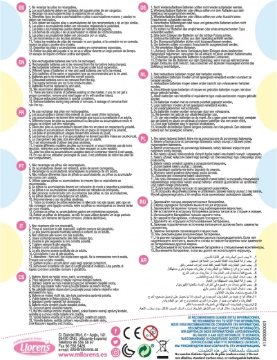 Punčka je ročno izdelana v Španiji, priložena je v darilni škatli in je takoj pripravljena za uporabo po odstranitvi varovala. V paketu so 3× gumbne baterije LR44 ter navodila za njihovo zamenjavo. Za razširjeno igro lahko dokupite originalna oblačila Llorens za velikost 33 cm.