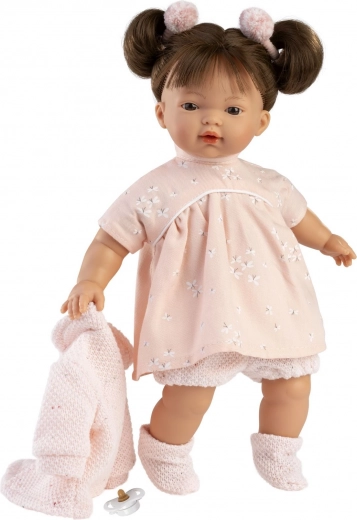 Llorens Vera je skrbno zasnovana otroška punčka za nežno igro in razvoj domišljije. Ima mehko tekstilno telo, idealno za crkljanje, ter mehčan vinil na glavi in okončinah z nežnimi detajli. Lasje po vsej glavi kar vabijo k česanju in ustvarjanju pričesk. Ko odstranite dudo, začne govoriti (»mama«, »papa«) in realistično jokati; magnetna duda zvoke takoj utiša.