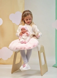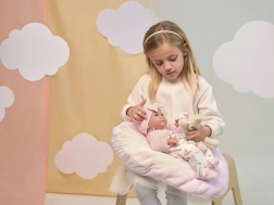 Del paketa je dvodeleni komplet oblačil in blazinica, zato se lahko otroci igrajo uspavanje ali previjanje. Punčka ima premične roke, noge in glavo, kar podpira razvoj fine motorike in kreativno igro. Idealno kot darilo za male skrbnice in zbirateljice punčk.