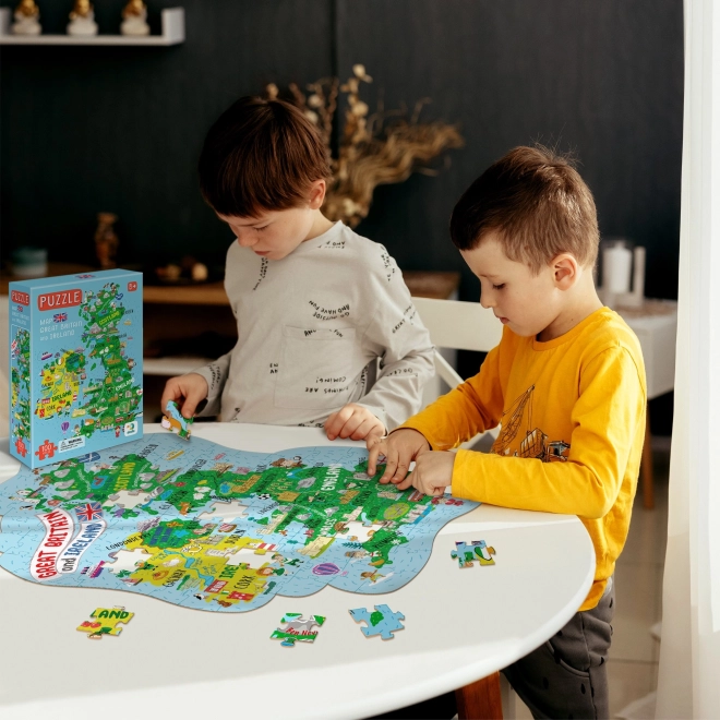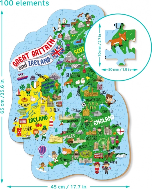 Odkrijte čar otokov z izobraževalno sestavljanko, ki na zabaven način predstavlja geografijo Velike Britanije in Severne Irske. Idealno za otroke in odrasle, z opisi v angleščini za vadbo jezika in razvoj znanja. Po sestavitvi meri približno 65 × 45 cm in vsebuje 100 koščkov za sproščeno družinsko zabavo.