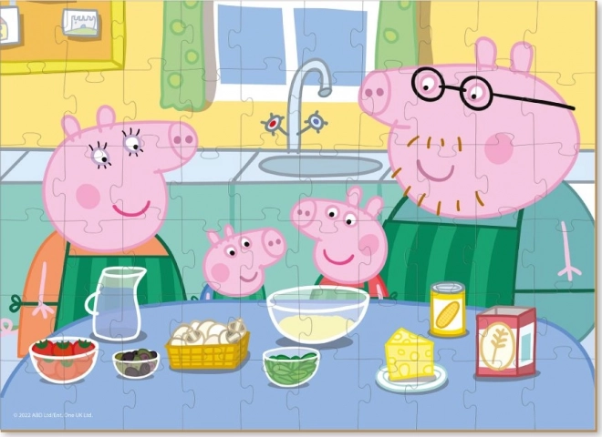 Ljubek motiv »Skupno kuhanje« iz priljubljenega sveta Pujsa Pepa bo navdušil vsakega malega oboževalca. Sestavljanka je zasnovana tako, da otrokom ponudi primerno izziv, razvija njihovo logično razmišljanje ter jih hkrati zabava s pisanimi barvami in preglednimi oblikami.