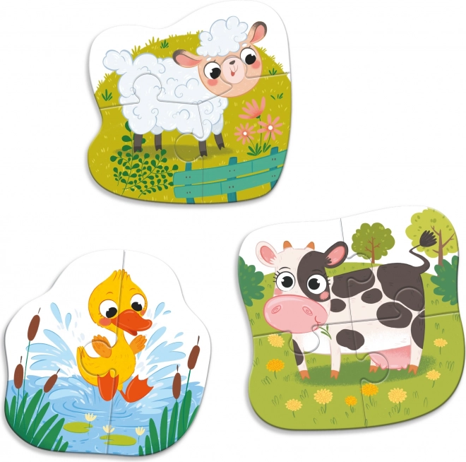 Odkrijte zabavne otroške obrisne sestavljanke z živalmi s kmetije v kompletu 3v1. Različne stopnje težavnosti spodbujajo razvoj domišljije, logičnega mišljenja in fine motorike otrok.