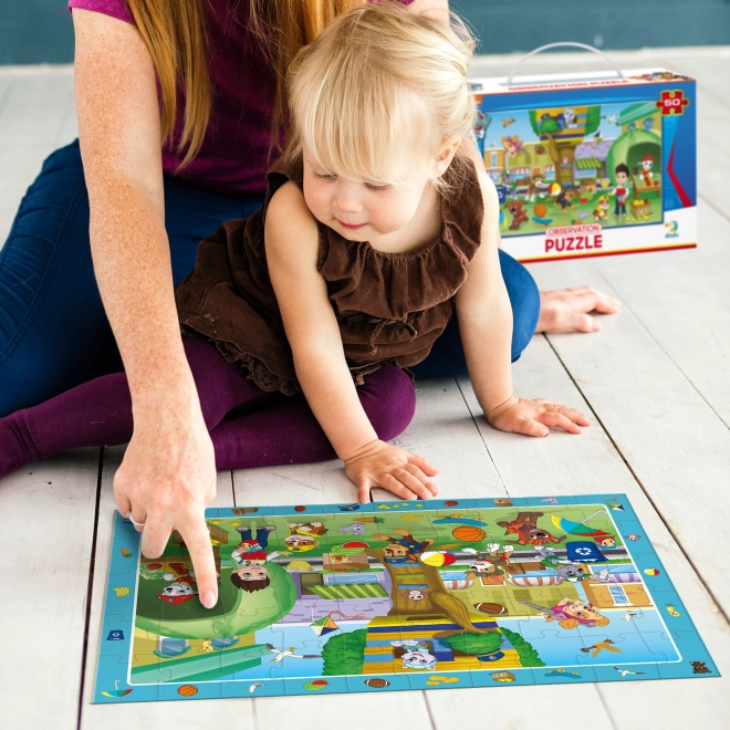 Zabavni otroški puzzle DODO z motivom PAW PATROL spremenijo sestavljanje v odkrivanje. Po sestavljanju se otroci lotijo iskalne igre in iščejo slike ob robovih. Set s 50 kosi ponuja barvito, podrobno ilustrirano sliko, ki spodbuja besedišče, spomin in koncentracijo.